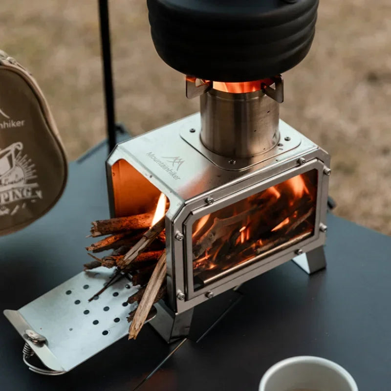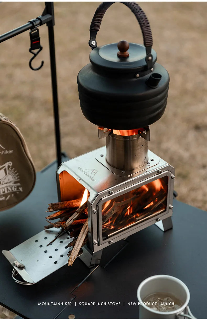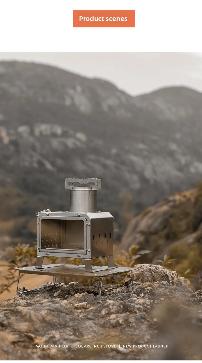 Papa SDF veut « juste réchauffer des saucisses », Maman a froid, pis la gang a faim live. Ce poêle à bois portable carré en acier inoxydable règle tout ça : tu rassembles quelques branches sèches, t’allumes (avec ton allumeur, pas inclus), puis pop! chaleur et petite cuisson conviviale. Simple, propre, efficace.